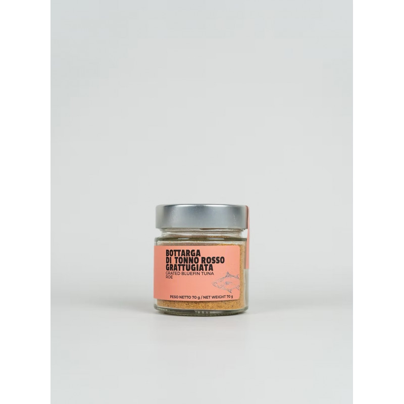 Una curiosità legata alla sua storia riguarda l'origine del nome, che deriva dall'arabo "butarikh", a testimonianza degli scambi culturali che hanno reso il Mediterraneo la culla di questo condimento gourmet d'eccellenza. La scelta del Tonno Rosso garantisce una grana di colore bruno-ambra scuro, segno distintivo di una qualità superiore rispetto alla più comune bottarga di tonno a pinna gialla, offrendo un retrogusto più rotondo e meno ferroso. La conservazione in vetro assicura che non vi siano contaminazioni, mantenendo la purezza organolettica richiesta dai palati più esigenti e dai professionisti della ristorazione. Utilizzare la bottarga grattugiata significa anche ottimizzare i tempi in cucina, avendo sempre a disposizione la giusta quantità per completare ogni ricetta con un tocco di eleganza e sapidità naturale nel pieno rispetto delle tradizioni mediterranee.