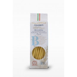 I Bucatini Strampelli sono l'emblema della cultura gastronomica di Amatrice, prodotti con grano duro 100% laziale accuratamente selezionato.
