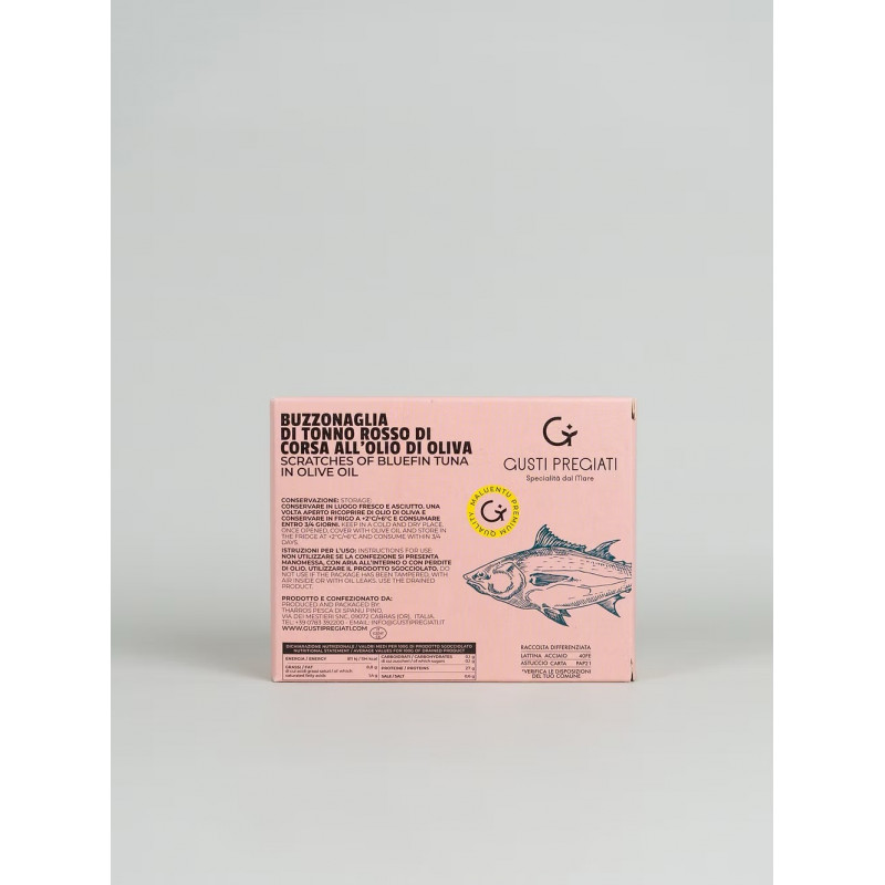 La Buzzonaglia di Tonno Rosso di Corsa in olio di oliva della ditta Gusti Pregiati rappresenta l'autentica essenza della tradizione conserviera mediterranea.